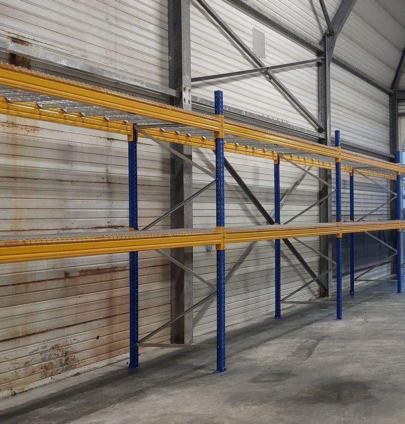 Te denken valt aan een stelling met palletdragerrs, roosters of stapelrekken.